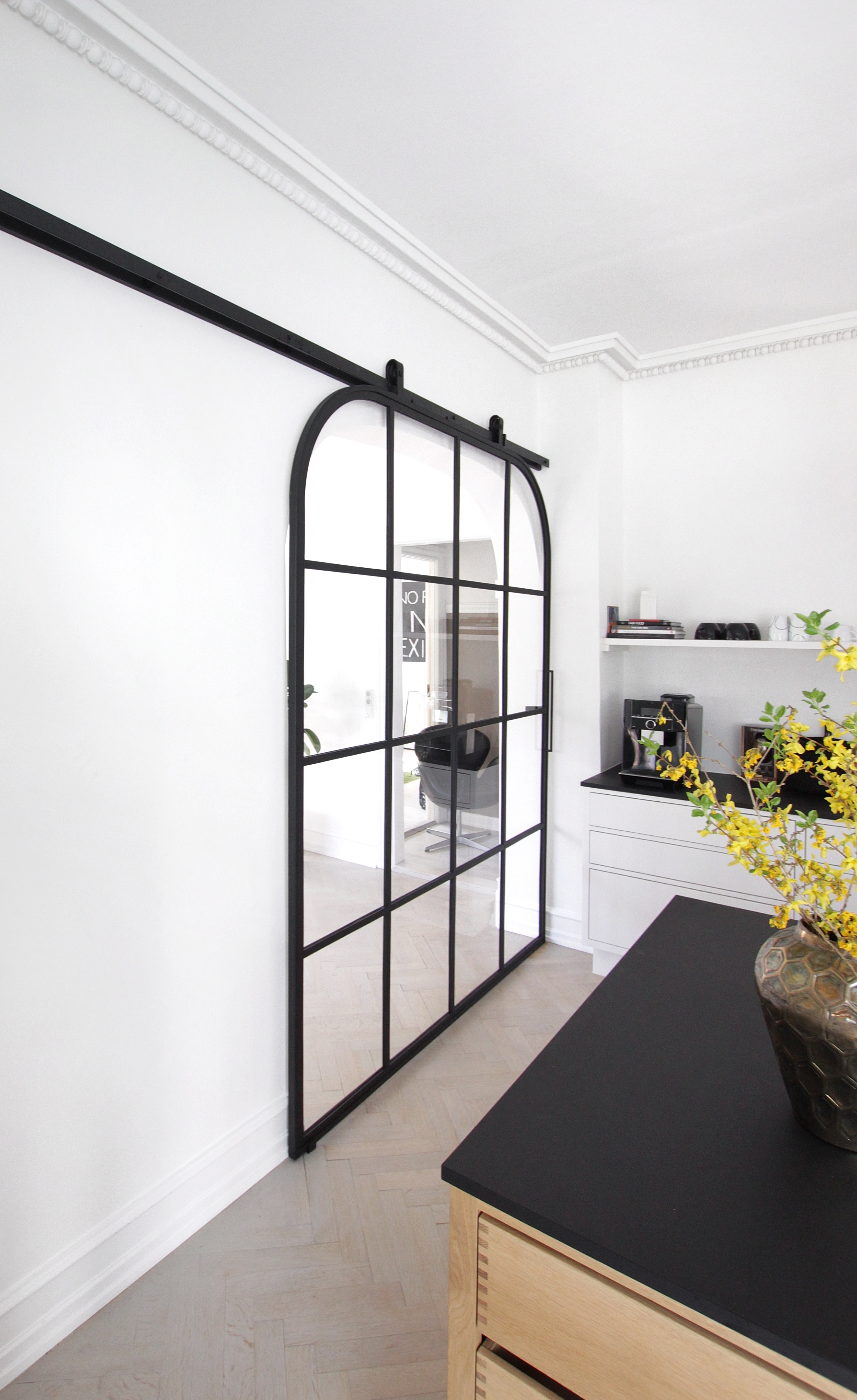 Black Owl fremstiller skydedøre i stål og glas efter specialmål og individuelt design. Alle skydedøre produceres på bestilling og tilpasses det konkrete projekt.