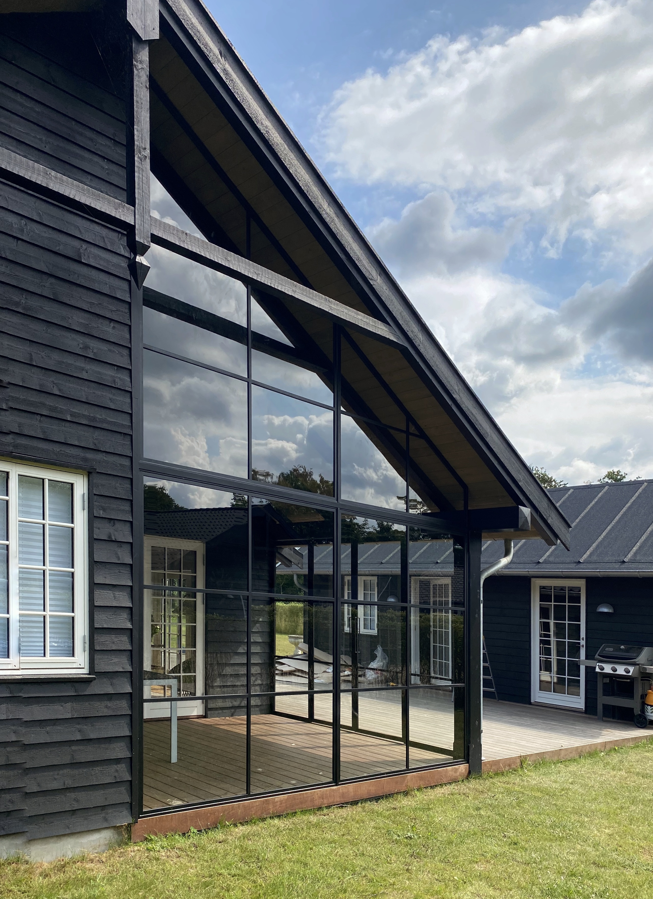 Ud over glasvægge til terrasser fremstiller vi også udvendige vinduer og døre i stål, tilpasset facade, klima og arkitektur.